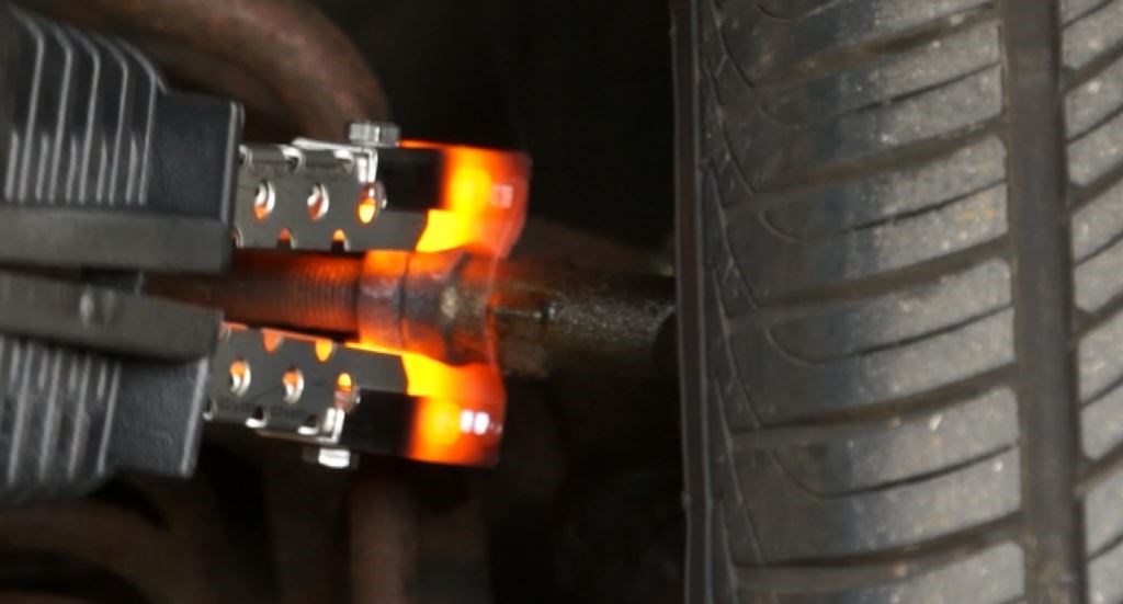 Anyone carrying out wheel alignment on an older car knows the chances are that many - or most! - of the suspension adjusting bolts will have been subject to the raveges of time and the elements, meaning the chances of them shifting with just a spanner are small to negligible. These days the dangers of naked flame underneath a car are well understood, and this "traditional" method of applying local heat has long been cast aside.